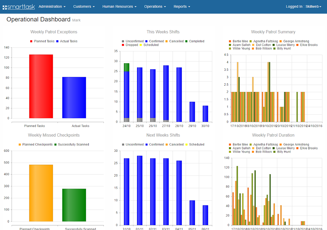 SmartTask Advanced helps ensure workforce compliance by comparing planned activities to time and attendance captured via NFC tag scans or IVR telephone calls, providing real-time management information and even initiating management escalation if a scheduled event is missed.