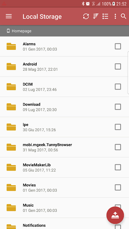 • Adı, Boyut, Son değiştirilme, Tip ederek yerel depolama sıralayın
