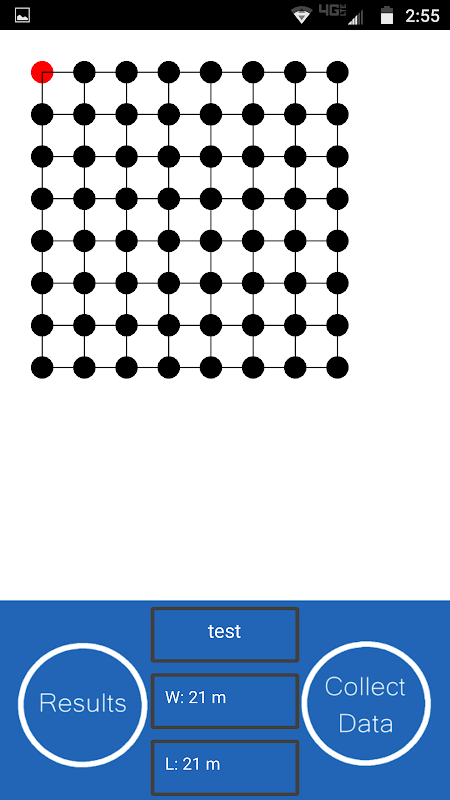 Throughout the measurement process the app will provide a visual and audible notification reminding you to mark the location on the floor when you have reached a node (a point which is part of your 3 meter grid) as well as corners of your perimeter.