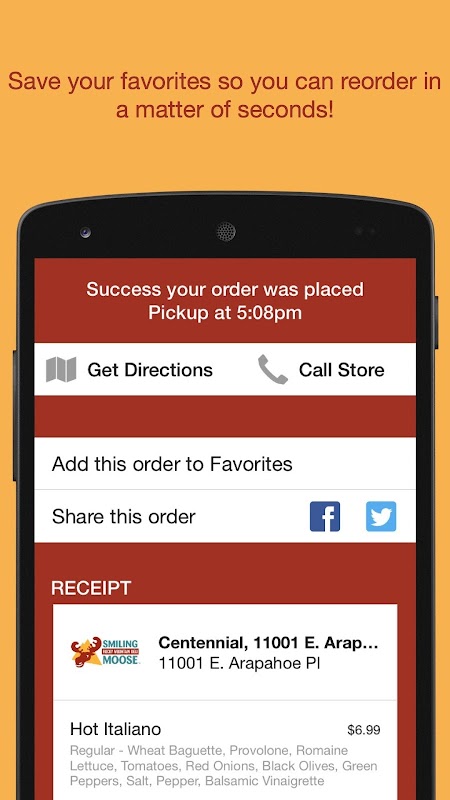 The Smiling Moose app, powered by Splick.it, allows you to find and order from nearby restaurants in just a matter of seconds. Customize your meal, select a pickup time and your food is ready when you arrive. You can skip to the front of the line, pick up your food, and go!