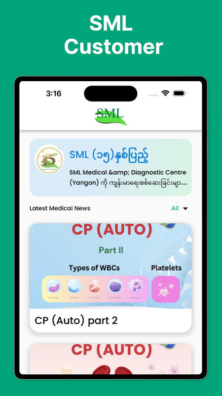 Sorunsuz bir sağlık hizmeti deneyimi için tasarlanan SML Müşteri Mobil Uygulamasını keşfedin! Hastalar laboratuvar yerlerini keşfedebilir, testlere göz atabilir ve sağlık haberleri hakkında bilgi sahibi olabilir. Kayıt, telefon numarası kimlik doğrulaması ile basittir. Sağlık profesyonelleri, testlerin, konumların ve planlamanın kolay seçimi de dahil olmak üzere, kolaylaştırılmış hasta rezervasyonlarından ve test yönetiminden yararlanır. Ayrıntılı bir liste ile tüm rezervasyonları zahmetsizce takip edin. Gizlilik göz önünde bulundurularak oluşturulan uygulama, hastalar ve profesyoneller için özel arayüzler sunar. SML gelişmiş sağlık hizmetleri parmaklarınızın ucunda.