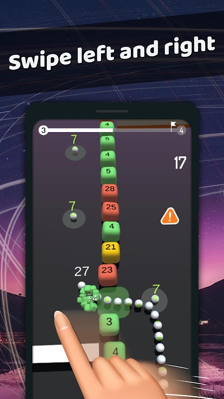 - Swipe your finger to dash along corridors and eat boxes as the snake’s body becomes longer and longer