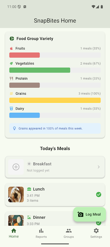 SnapBites, beslenmenizi takip etmenize ve tutarlı kalmanıza yardımcı olmak için yapay zeka destekli öğün takibini sosyal sorumluluk gruplarıyla birleştirir. Öğünlerinizi saniyeler içinde takip edin, günlük sağlık puanınızı alın ve haftalık liderlik tablolarında arkadaşlarınızla yarışın; üstelik öğün fotoğraflarını paylaşmadan.