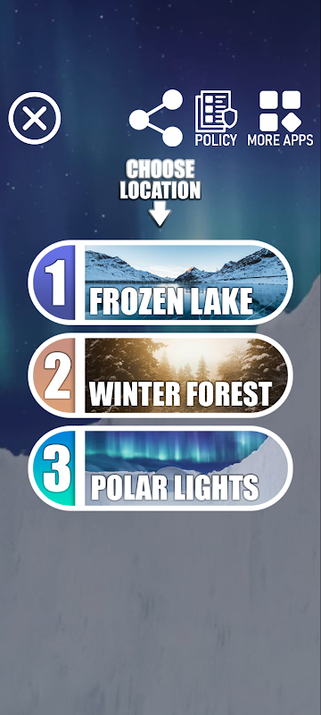 - Ana menüdeki üç konumdan birini seçin (donmuş göl, kış ormanı, kutup ışıkları).