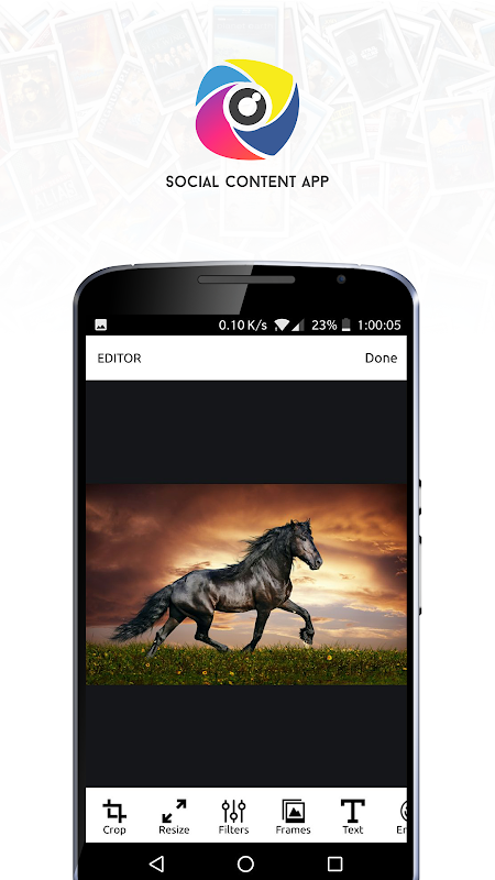 You can switch between various tabs for social medias (facebook , instagram , ... ) , you can edit any photo you want , save it to your gallery or share it to social media, you can also upload images from camera/gallery and edit them easily with our powerful photo editor .