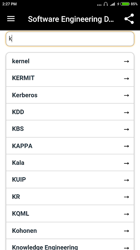 Yazılım ve diğerleriyle ilgili tüm kelimelerin anlamlarını içerir. Eğitim ve diğer ilgili amaçlar için çok yararlı ve yararlıdır.Algili kelimeyi alfabetik olarak bulmanıza yardımcı olan arama seçeneği içerir.