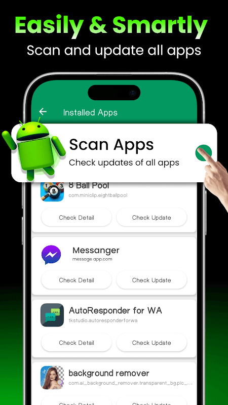 Kullanıcının indirdiği uygulamaları doğrudan Uygulama Güncelleyici aracılığıyla yönetin. İstenmeyen uygulamaları ve oyunları kök erişimine ihtiyaç duymadan kolayca kaldırabilirsiniz, bu da cihazınızın modernliğini korumanıza yardımcı olur.