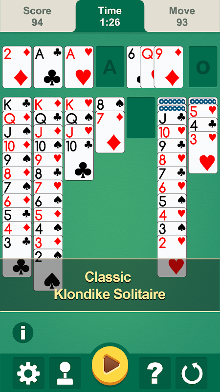 • Klondike Solitaire – 1 Çek ve 3 Çek modları