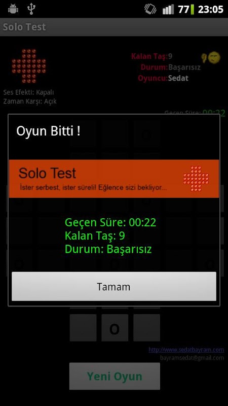 *1.2: Oyun sırasında hamleniz devam etmiyorsa oyun oynamak basit yapay zeka ile uyarlanacak ve yeni oyun açma eğlenceye devam