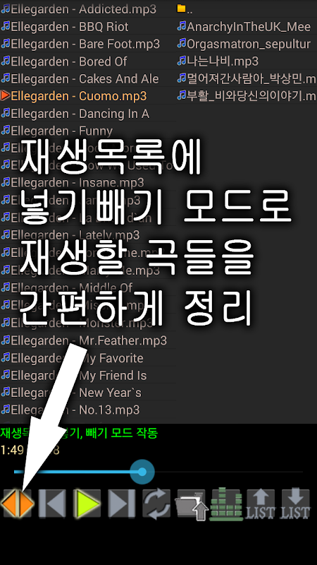 - 탐색기처럼 원하는 음악을 손쉽게 찾고 손쉽게 재생목록에 추가