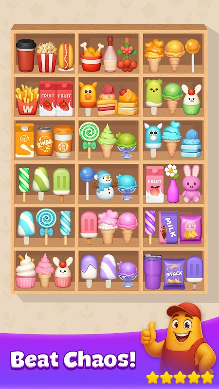 Taze gıda reyonundaki meyve sularından 🍉, oyuncak deposundaki aksiyon figürlerine 🧸, çeşitli spor ekipmanlarına ⚽ kadar 50'den fazla farklı ürün, sıralama yaparken sizi sürekli taze ve ilgili tutar.