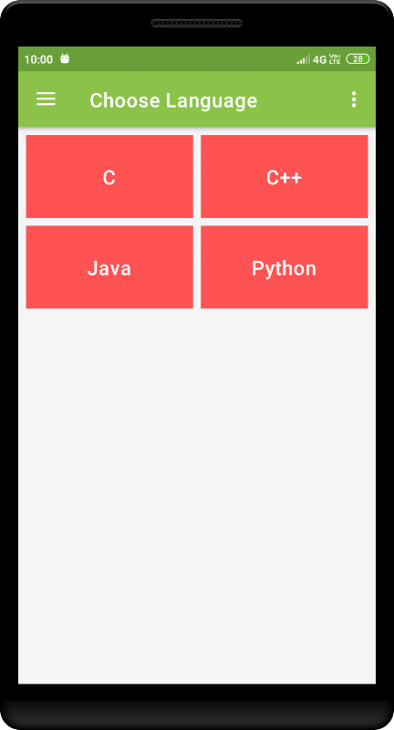 The app contains 250+ basic programs in four different programming languages which include 1) C