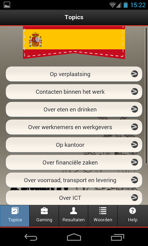 Deze app is bestemd voor Nederlandstaligen die hun professionele woordenschat in het Spaans willen verbeteren.