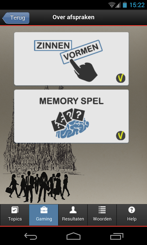 Je krijgt bovendien een woordenlijst als handig hulpmiddel én je kan jezelf testen met een game. Je resultaten kan je delen op facebook.