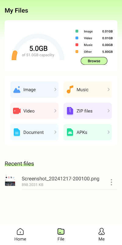 Dosya Yönetimi Özellikleri: Cihazınızın depolama kullanımını görüntüleyin ve depolama alanınızı verimli bir şekilde yönetmenize yardımcı olmak için dosyaları türe göre hızla filtreleyin.