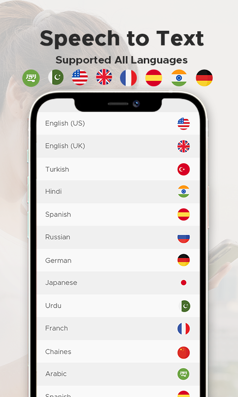 >✅ Konuşma Metne dönüştürücü Sesli Notlar ve Sesle Yazma uygulaması Destek Dilleri: ▼