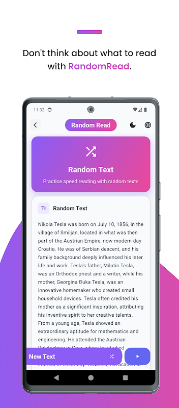 Rastgele Okuma: Aklınızda belirli bir metin olmadığında, uygulama tarafından sağlanan rastgele metinlerle pratik yapın. 🎲📚