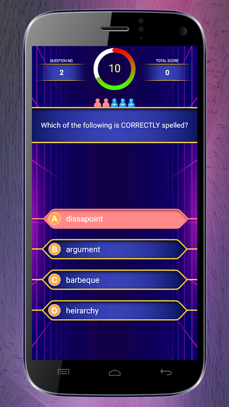 - Multiple Choice type, simply choose the word with the correct spelling.