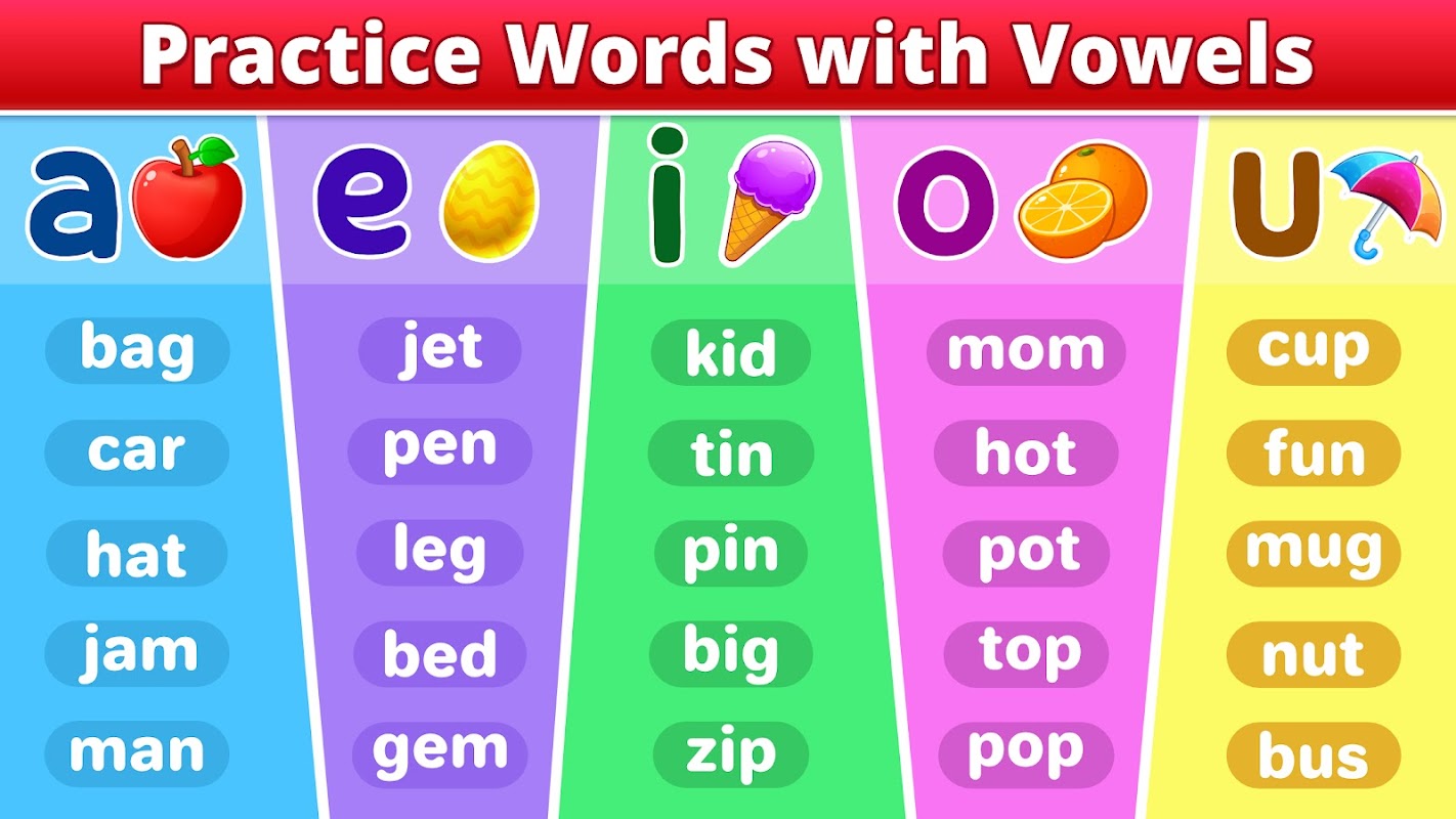 This spelling game engages kids with a variety of interactive learning activities that teach CVC words, letter recognition, and word-building skills. Whether your child is beginning to learn vowels and consonants or is ready to explore a CVC words list, this game makes learning english exciting and effective for kids.