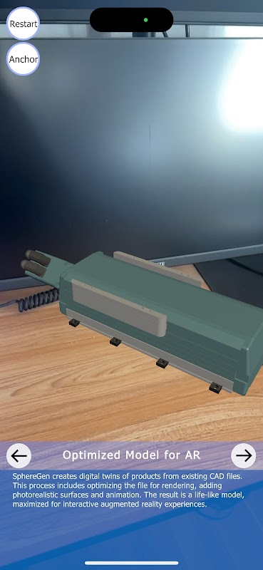 SphereGenXR, tek bir CAD dosyasından statik, 2D sunumları dinamik, 3D ürün gösterimlerine ve ürün fikri, satış, pazarlama, eğitim ve hizmet alanlarında sonuçları iyileştirecek görsel açıdan ilgi çekici, sürükleyici deneyimlere dönüştürür. SphereGenXR, karma gerçeklik kulaklıklarına, akıllı telefonlara ve tabletlere, web sayfalarına dağıtılabilir veya öğrenime entegre edilebilir