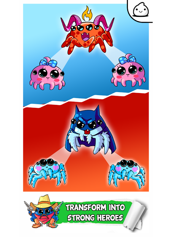 Find out what happens to an Spider Evolution when the Spider Evolution started, combine two Spiders to evolve and discover the most curious, cute, kawaii and funny forms of your Spider Evolution.