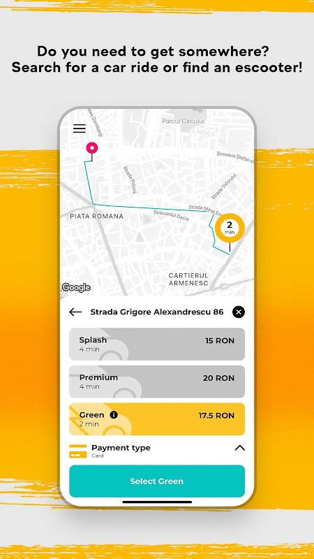 SPLASH uygulamasını açın ve bir araba veya escooter yolculuğu arayın!