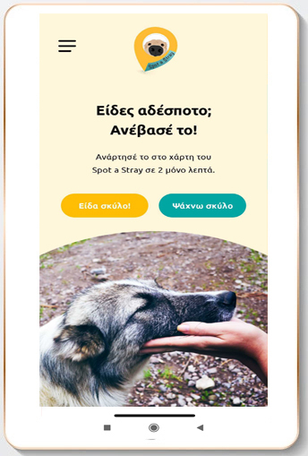 Spot a Stray uygulamasının temel amacı, Yunanistan'daki tüm sokak köpeklerini (ama aynı zamanda kayıp) ve uygun süreçten geçerek nihai olarak yoldan çıkarmalarına kadar kayıt altına almaktır. Ülkedeki genç nesillerin sokak hayvanlarının tedavisi konusunda daha bilinçli olduğu gerçeği göz önüne alındığında, uygulamanın STK'lar, hayvan refahı kuruluşları, veterinerler ve genel olarak Yunan devleti arasındaki mücadelede çok güçlü bir müttefik olacağına inanıyoruz.