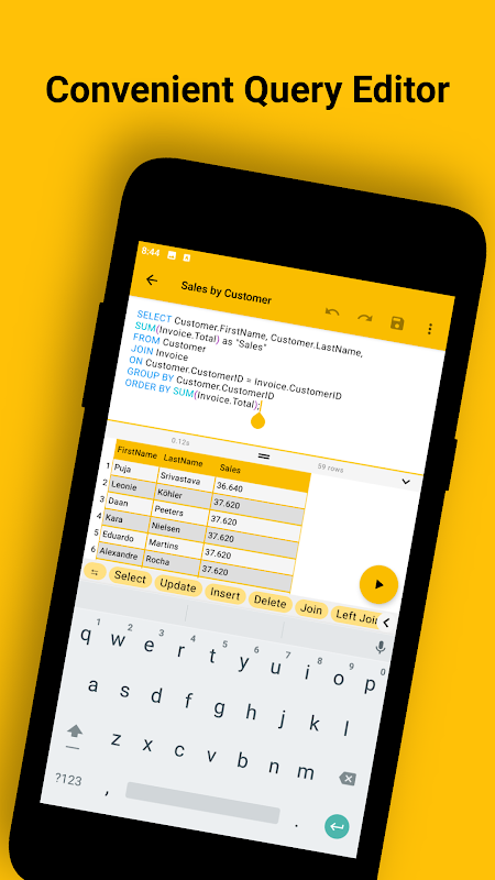 SQL Client ile veritabanı sisteminizin desteklediği herhangi bir SQL deyimini (Sorgular, DDL, DML, DCL) çalıştırabilir ve sonuçları anında görüntüleyebilirsiniz. Kod parçacıkları, sözdizimi vurgulama ve geri alma/yineleme işlevleri gibi özelliklerin keyfini çıkarın ve SQL ifadelerini verimli bir şekilde oluşturmanıza olanak sağlayın.