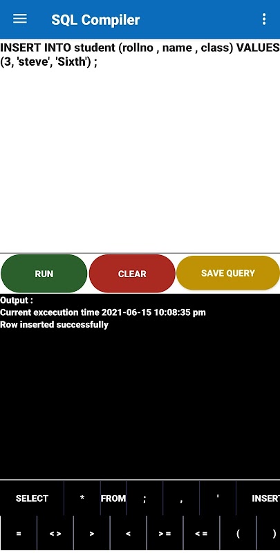 Bu derleyiciyi kullanarak herhangi bir temel SQL sorgusunu çalıştırabilir ve depolama cihazınızın kapasitesine bağlı olarak istediğiniz sayıda tablo oluşturabilir ve sınırsız veri depolayabilirsiniz.