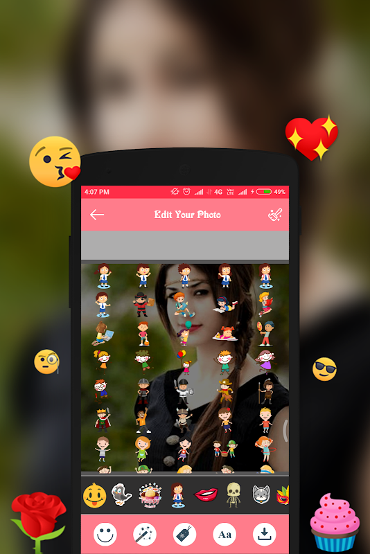 ✔ Pick your favorite filter, blur background, sticker, Emoji from the wide collection