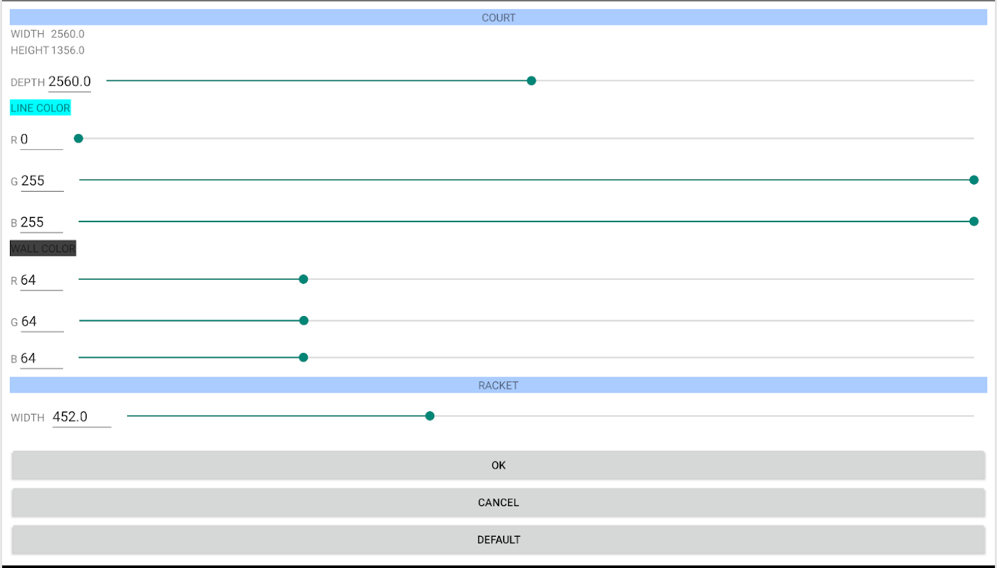 Sağ üstteki buton, duvarın rengi, topun rengi gibi parametreleri değiştirebileceğiniz, böylece seçtiğiniz renk ve boyutla oynayabileceğiniz bir ekran görüntüleyecektir.