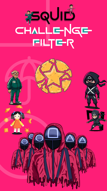 🚀 Kendine meydan oku ve destansı anları kaydet – Squid Challenge - Eğlenceli Filtre'yi şimdi indir ve Squid tarzını göster! hayatta kalma, meydan okuma, zeka, squid game