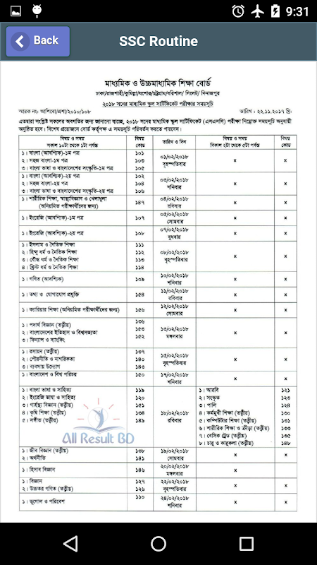 Would you attend SSC Exam 2018? Or, Dakhil (madrassa board) exam 2018 or, vocational courses exam 2018? Then this bangla android apps is for you. In this app you'll get education board Bangladesh intermediate exam routine. Many of you are taking SSC Prep, many are doing vocational courses, and many read madrasa book from madrasa app. But in this single we have added routine for all three category for Chittagong board, Dhaka board, Sylhet board, Comilla board, Dinajpur board, Rajshahi board, Barisal board, khulna board, Rangpur board etc. So this is an essential bangla Educational android app. So after reading all the NCTB text books of Bangladesh Education Board for HSC science group, arts group or humanities group and business group students should use this app for exam schedule. May be your have read Bangla, Byakoron, Islamic studies, Mathematics, Physics, Chemistry, English For Today, English Grammar, Social Science, Social Studies, Soil Sciences, Biology, Higher Math, Science, Bangladesh & World Affairs, Fine Arts Book, ICT, HSC english grammar, higher mathematics, Physical Studies, Home Science and many more. But all are in vain if could not attend exam timely. So, download free at once!