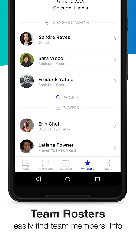 Birden fazla takımda mı? Problem değil! Bir oyuncu veya ebeveyn veya koç olarak, takımlarınızın her birine kişiselleştirilmiş ana sayfanızdan erişebilirsiniz. İletişim programlarına, iletişim bilgilerine, iletişim bilgilerine ve daha fazlasına erişerek, iletişimde ve iletişimde kalmanızı her zamankinden daha kolay hale getirin.