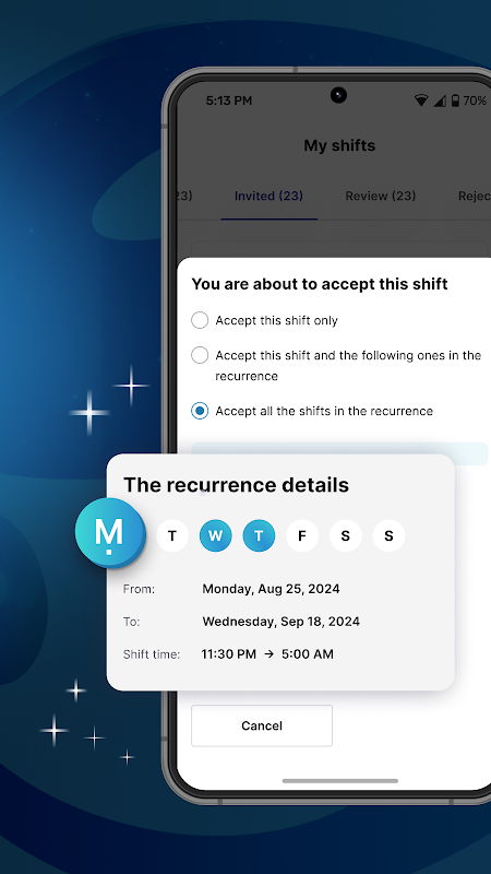 - Self Servis Planlama: Açık vardiyalara anında göz atın ve yakalayın, iş-hayat dengenizi gerçek zamanlı olarak sağlayın.