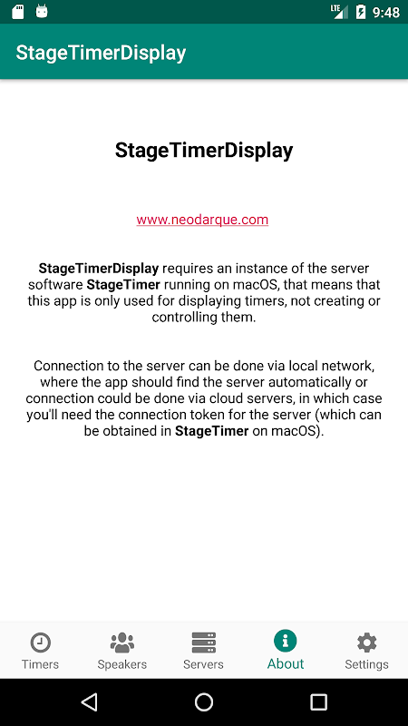 Herhangi bir kullanıcının, çalışan bir StageTimer örneğine uzaktan bağlanmasına ve çalışan zamanlayıcıları izlemesine ve ayrıca bir gösterinin çalışma sırasını görmesine izin verir.