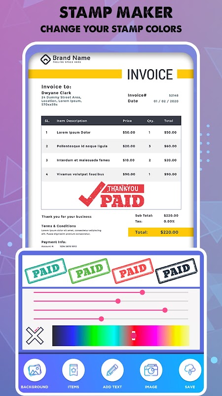 Stamp Maker uygulaması, telif hakkı bulunan fotoğraflarınızda kişiselleştirilmiş pullar ve özel filigranlar oluşturmanıza olanak tanır. Önemli sanat eserinizi izinsiz kullanımdan koruyun. Metin ve pek çok özelleştirme eklemek için önceden hazırlanmış pulların toplanması seçeneği. Metni özelleştirebilir, döndürebilir, çevirebilir ve silebilirsiniz. En iyi dijital damga mühür yapımcısı uygulaması. Dijital belgelerinizi orijinal ve profesyonel hale getirmek için geniş çıkartma koleksiyonundan çıkartmalar ve çeşitli damga desenleri ekleyin.