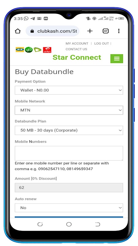 Star Connect, Airtime, Databundle, CableTv ve daha fazlasının anında şarj edilmesini sağlar.