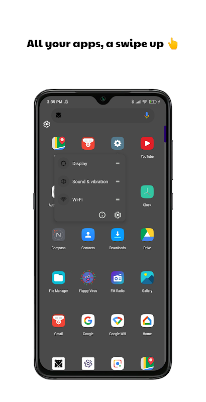 ✦ You can configure gestures to lock the phone with a double tap on the screen, open the application panel by swiping up the screen, etc.