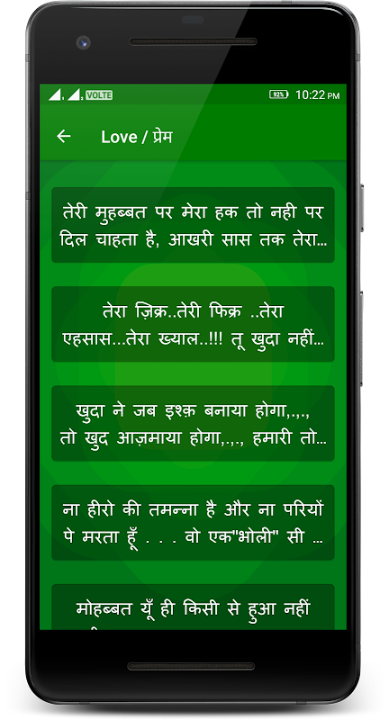 Application contain best and Latest Shayari, Status and Messages.
