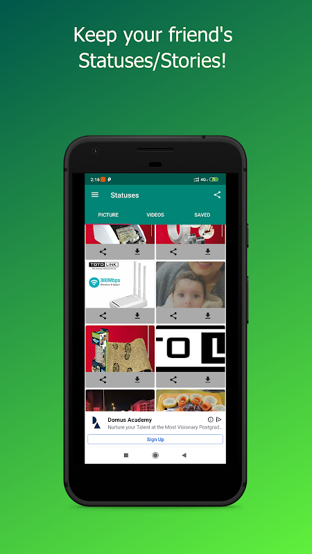 The app will take care of keeping all your saved/shared status in a tab called saved.