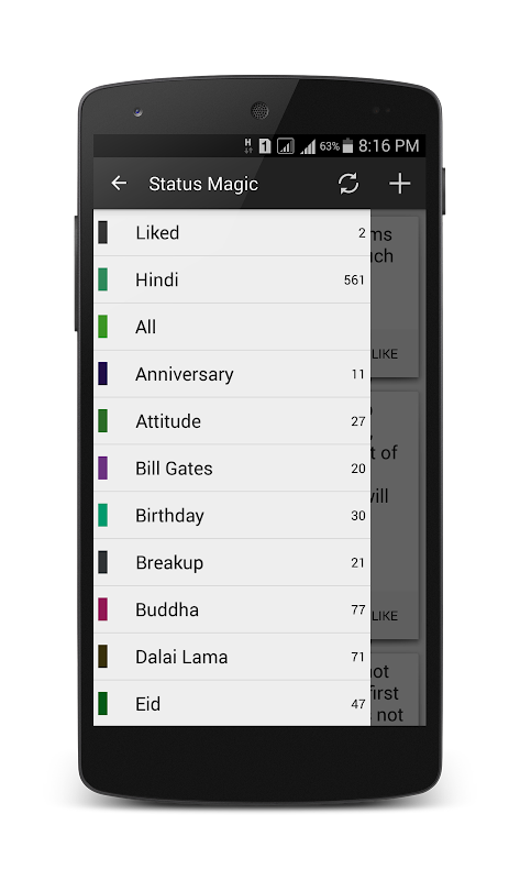 - You can save your most favorite status to Liked category.Afterwards you can access it anytime.