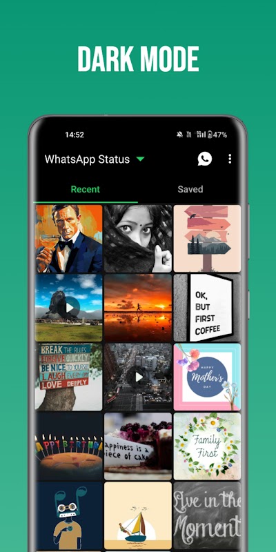 WhatsApp durumlarını kaydetmeyi, yönetmeyi ve paylaşmayı her zamankinden daha kolay hale getirmek için tasarlanmış nihai WhatsApp durum koruyucu uygulamasına hoş geldiniz! İster Kişisel bağlantılar için WhatsApp, ister Profesyonel etkileşimler için WhatsApp Business kullanıyor olun, uygulamamız her iki platformu da sorunsuz bir şekilde destekler. Tercihinize uyacak şekilde hem koyu hem de açık temalar içeren kullanıcı dostu bir arayüze sahip olan uygulamamız, onu WhatsApp'ta paylaşılan anıları korumak isteyen herkes için başvurulacak çözüm haline getiren güçlü bir dizi özellik sunar .