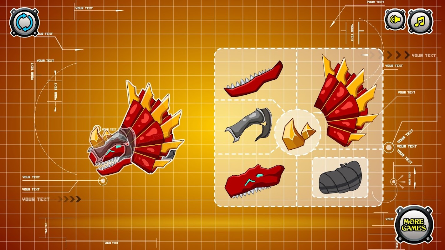 Assemble the parts are scattered , Try assembling a large and powerful mechanical Triceratops. After the assembly, You can use a variety of techniques.