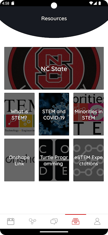 STEM Squad, Mentor ve Mentee'nin yazışma yapmasına ve Mentee'nin eğitimsel ilerlemesini takip etmesine olanak tanıyan bir mobil uygulamadır. Bu, Kuzey Karolina Eyalet Üniversitesi bünyesinde kapalı bir grup projesidir.