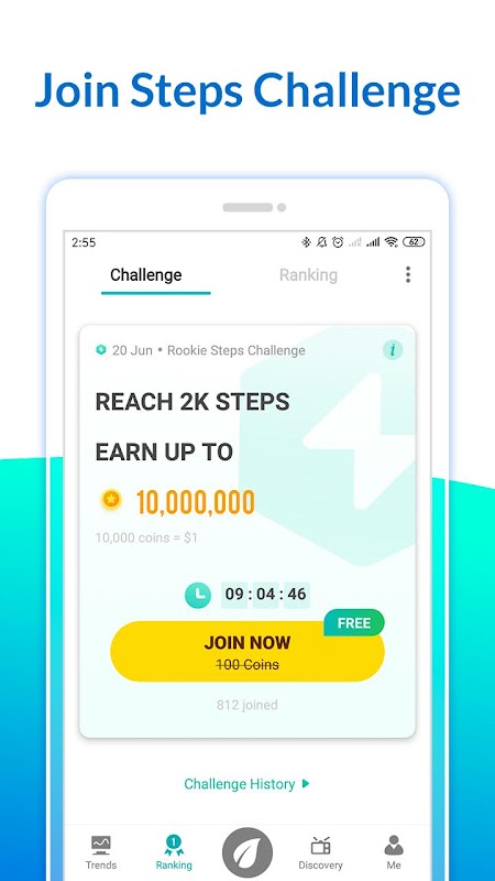 ➤Use 100 coins to sign up the challenge and you can earn more coins. Walk more and gain coins.