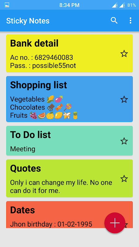 • Select your favorite notes for a stay on top & quick access.