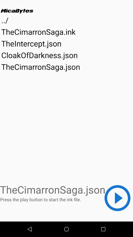 StoryBytes, demo olarak iki kısa Ink betiği içerir (bunlar telefonunuzdaki yerel dosya depolamasına kopyalanacaktır):