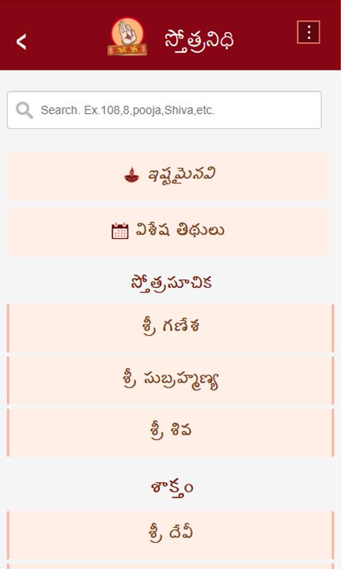 StoraNidhi is the ultimate mobile app for your devotional chanting. This has all stotra texts in Telugu, Hindi (Devanagari) and English (IAST) languages that are published on stotranidhi.com website. The app contains many stotras made by Adi Shankaracharya and many other great saints. The Stotra literature is important in understanding God and float in an unequated bliss.