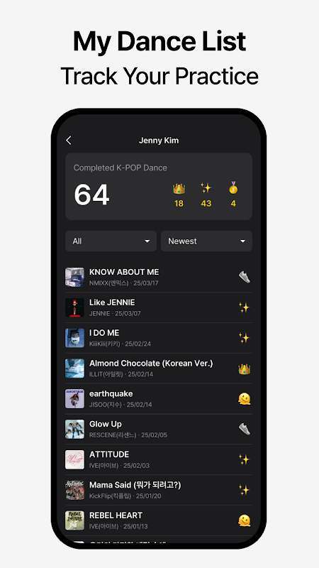 K-POP profesyonel dansçı videolarınızın yanında pratik yapın. Hareketlerinizin ve zamanlamanızın tam olarak nerede farklılaştığını görün; daha hızlı seviye atlayın!